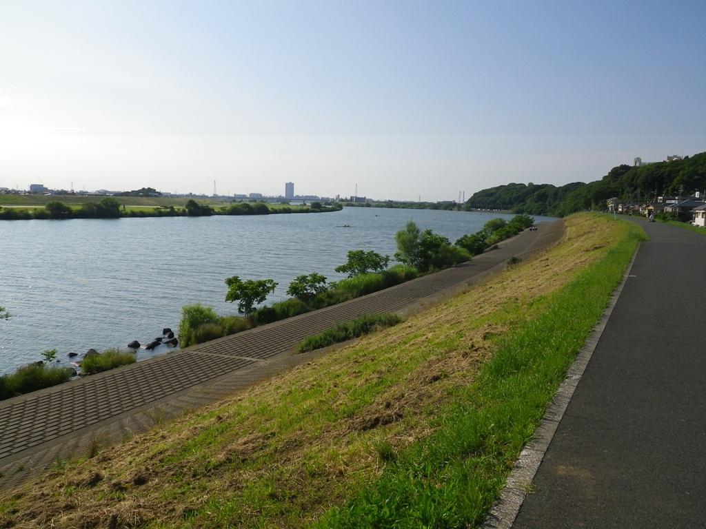 国府台は駅近くの堤防沿いのテトラ帯と、第1中学校あたりから上流のテトラ帯に