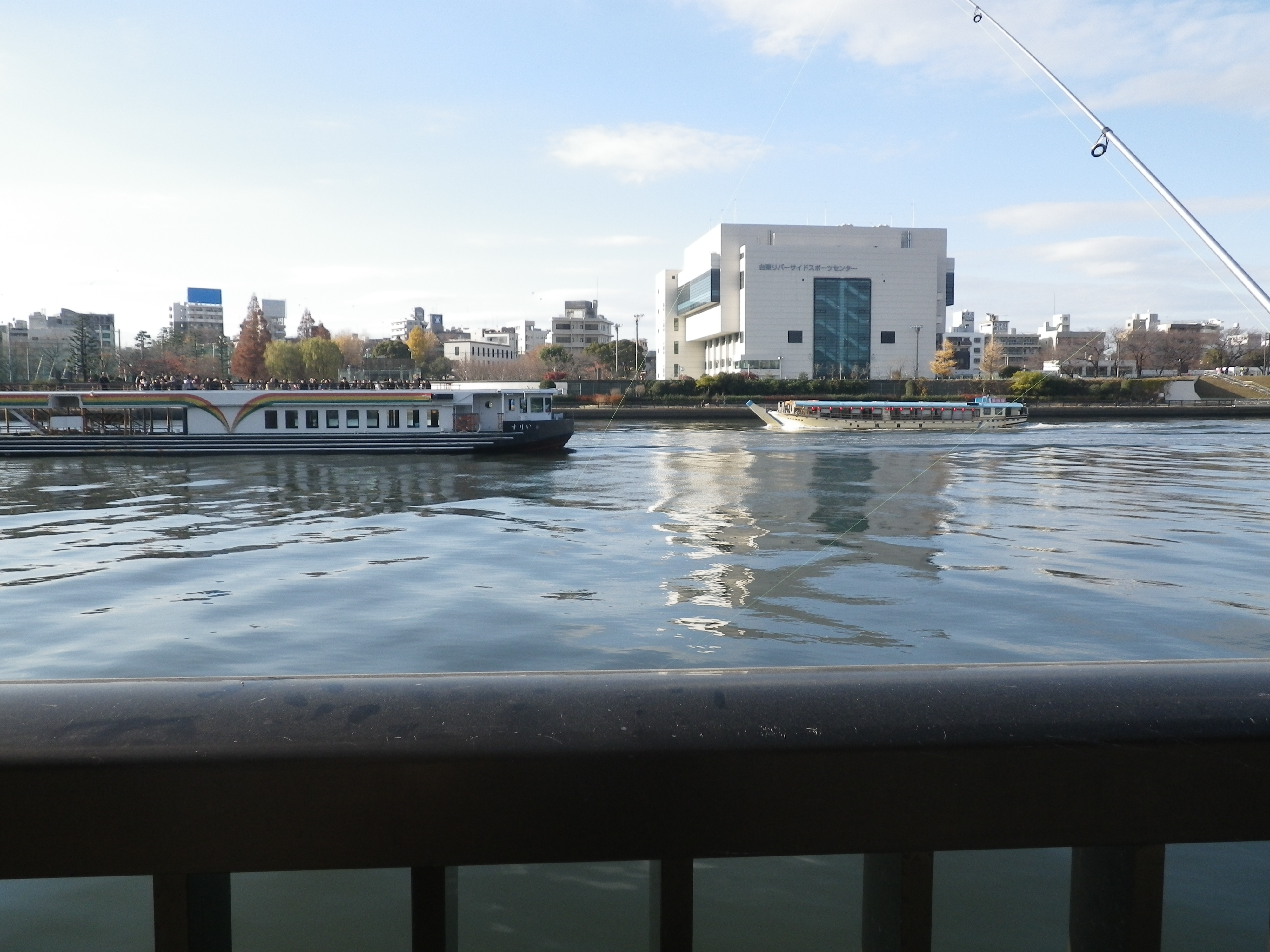 桜橋を渡って墨田区側に釣り座を構えました。もちろんエンコ釣りです。