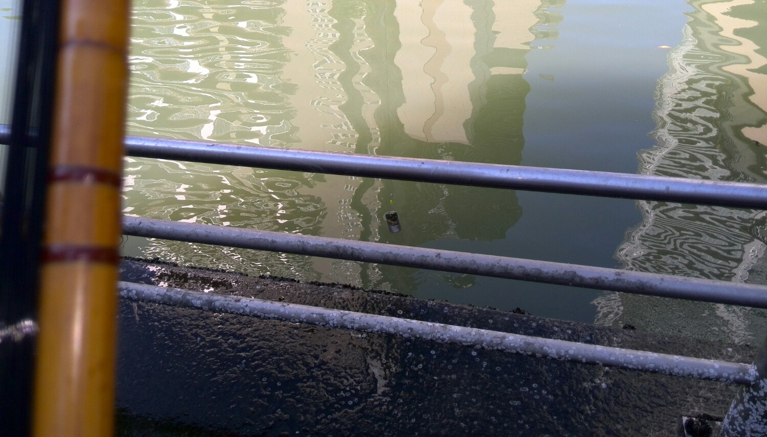 ここ数日の大雨で、かなり濁っているが、潮通しの良い水路と良くない水路が、よくわかる。