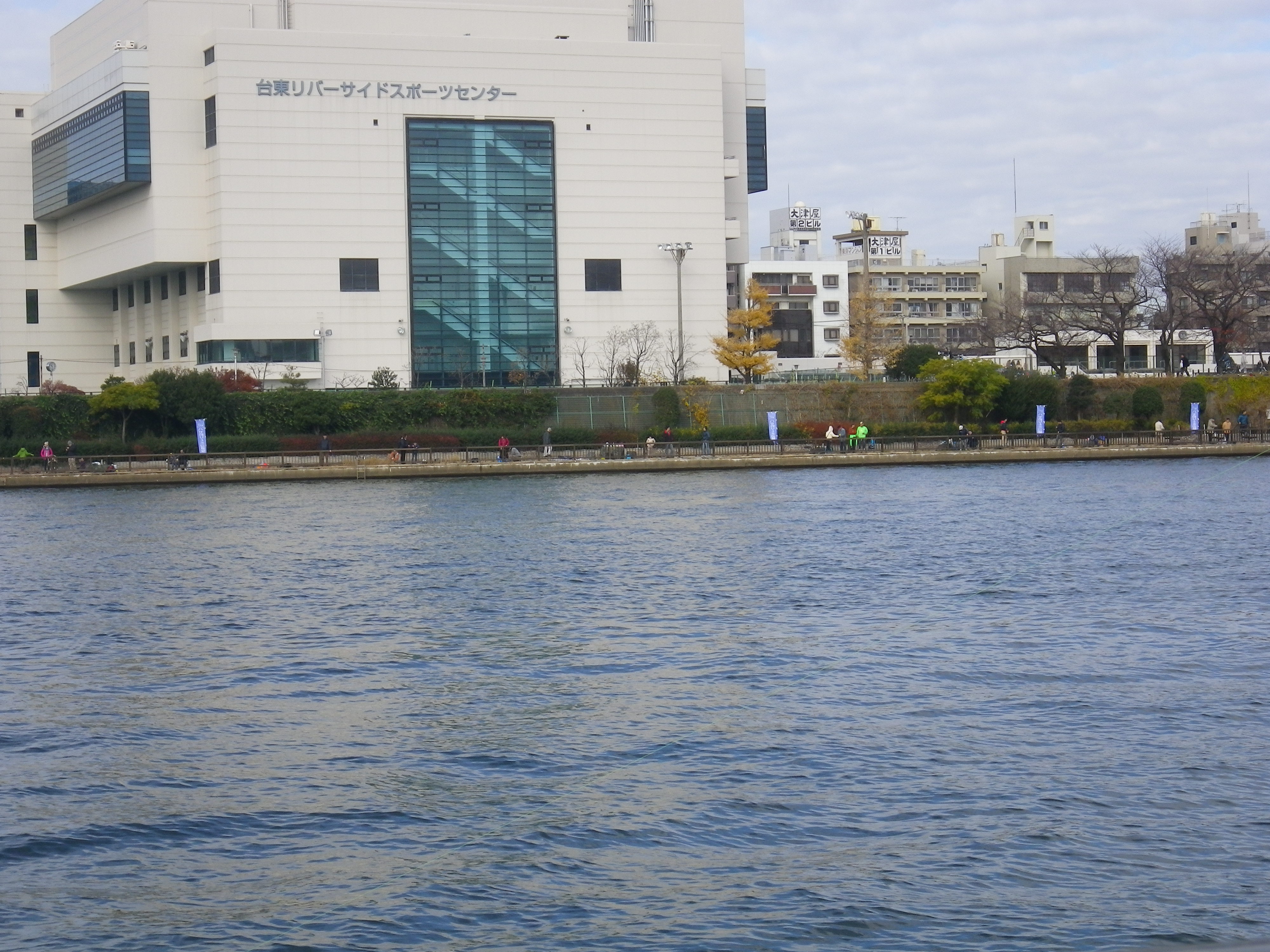 桜橋を渡って墨田区側に釣り座を構えました。もちろんエンコ釣りです。
